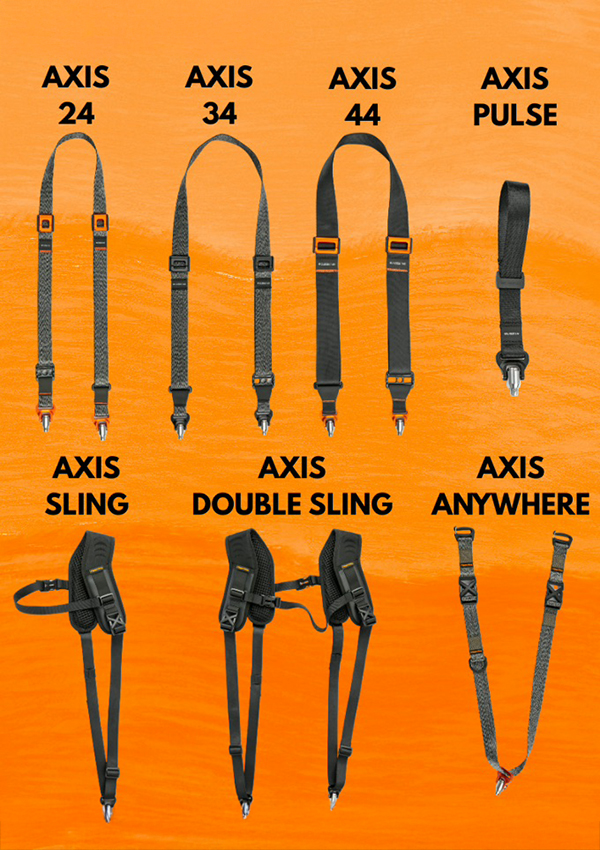 • Axis 24 / 34 / 44 – camera straps in three widths to match any camera size, weight or shape.