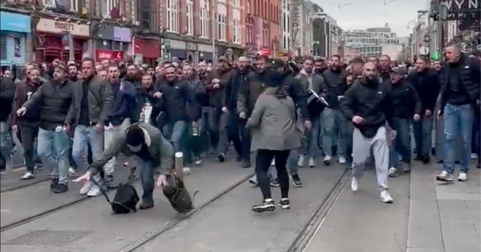 A group of German soccer fans in Dublin, Ireland, assaulted one photographer and spat on another during unruly scenes on Saturday.