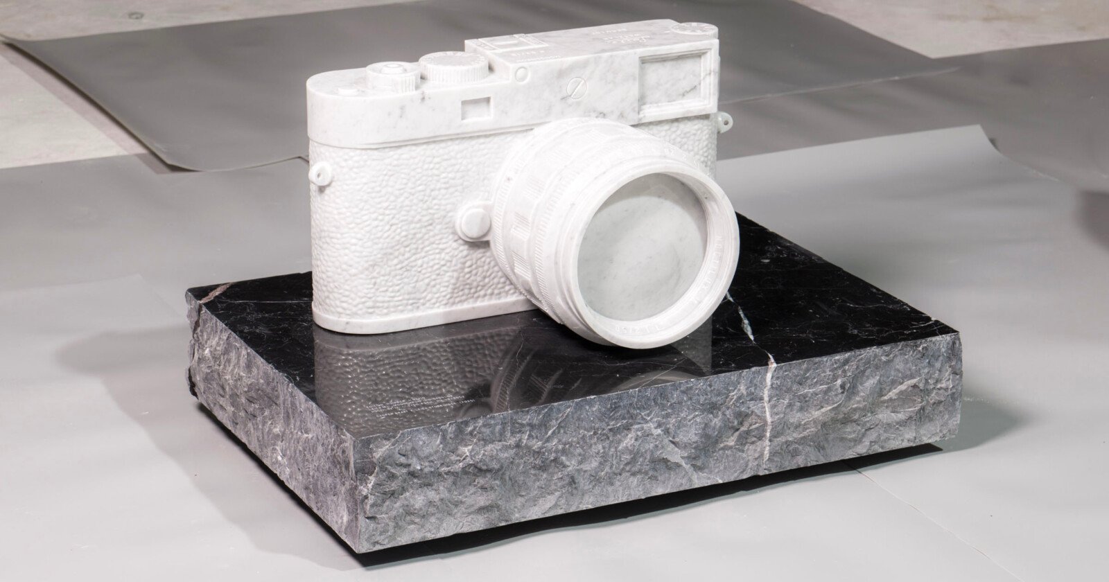 Leica, never a company that shies away from extravagance or style, commissioned an acclaimed artist to sculpt a massive eight-ton marble sculpture of a Leica M11 Monochrom camera and an accompanying series of 10 smaller ones that still weigh 170 kilograms (375 pounds).